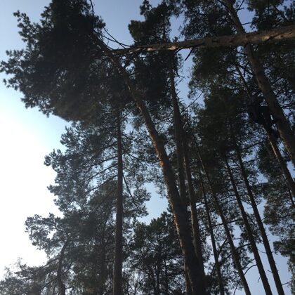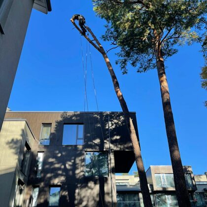 Lauzta koka (iekāries koks) nozāģēšana grūti pieejamā vietā. -